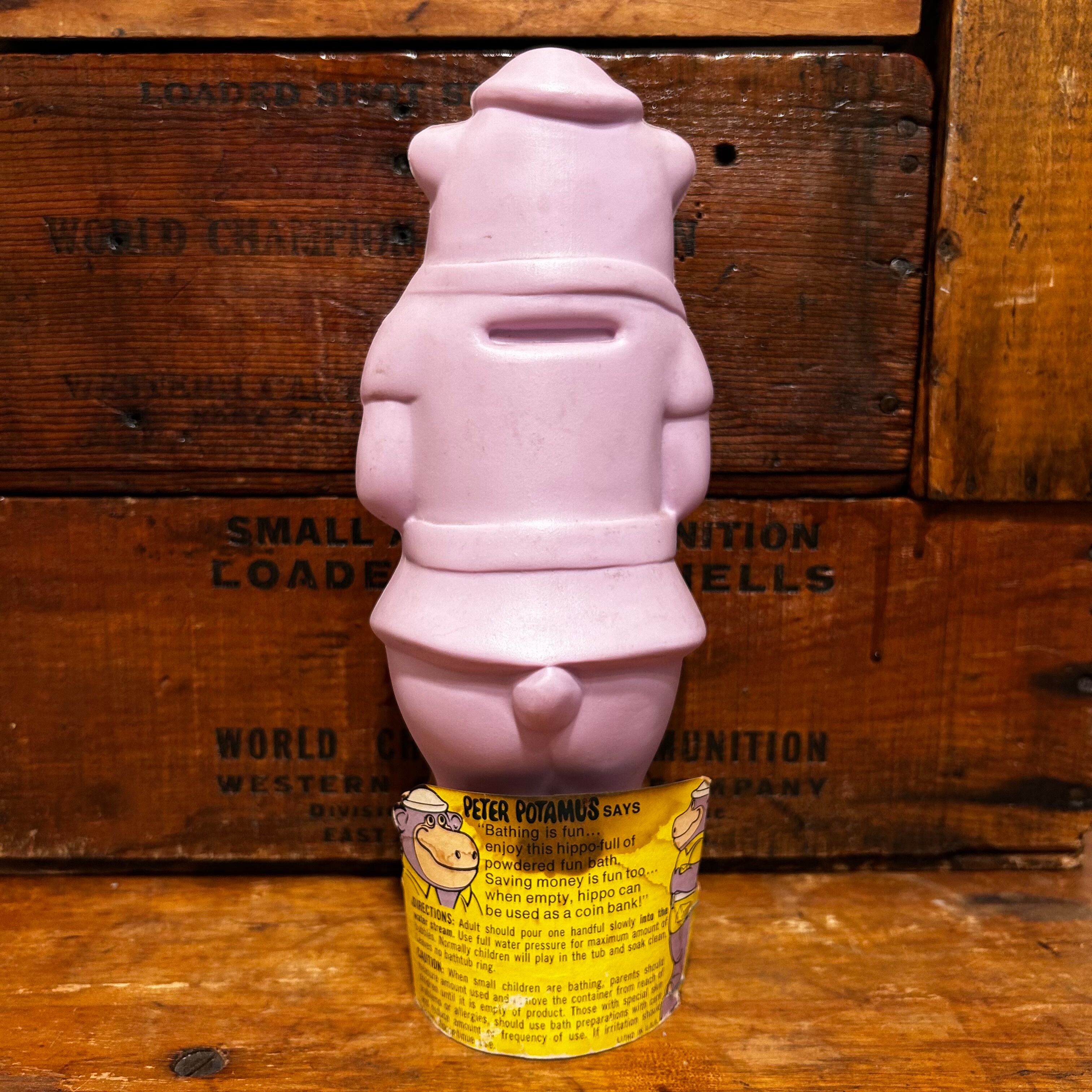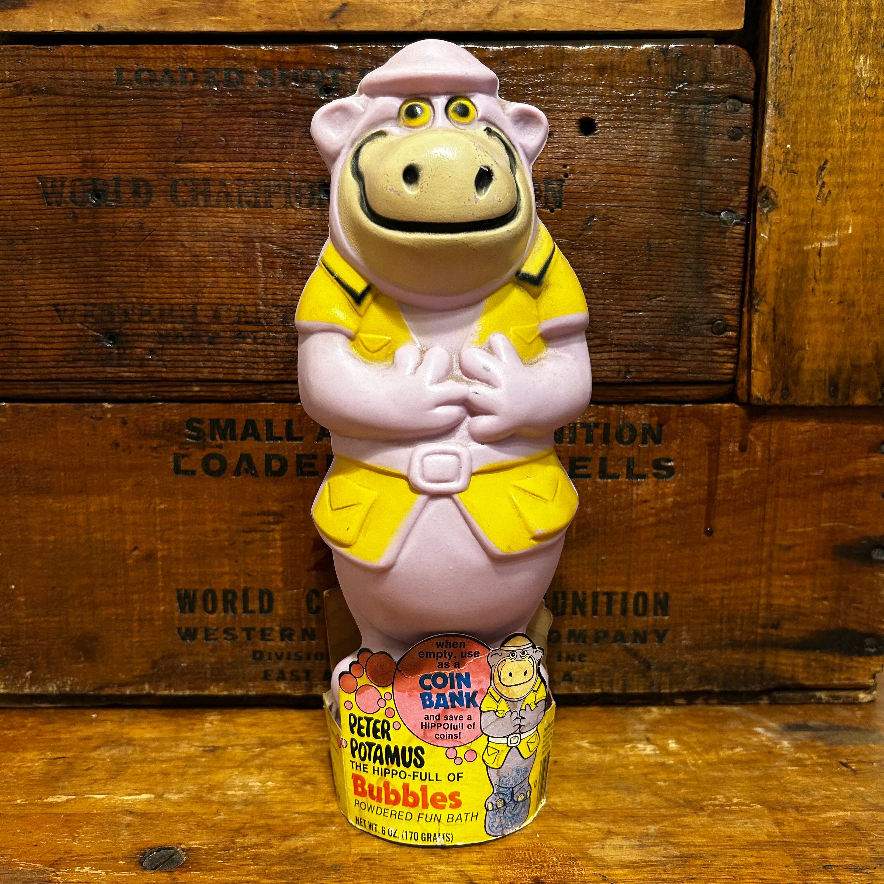 ハンナ・バーベラ社のアニメ「ピーター・ポタマス」のキャラクター「カバのガバチョ」のビンテージのバブルバスボトル兼貯金箱です★