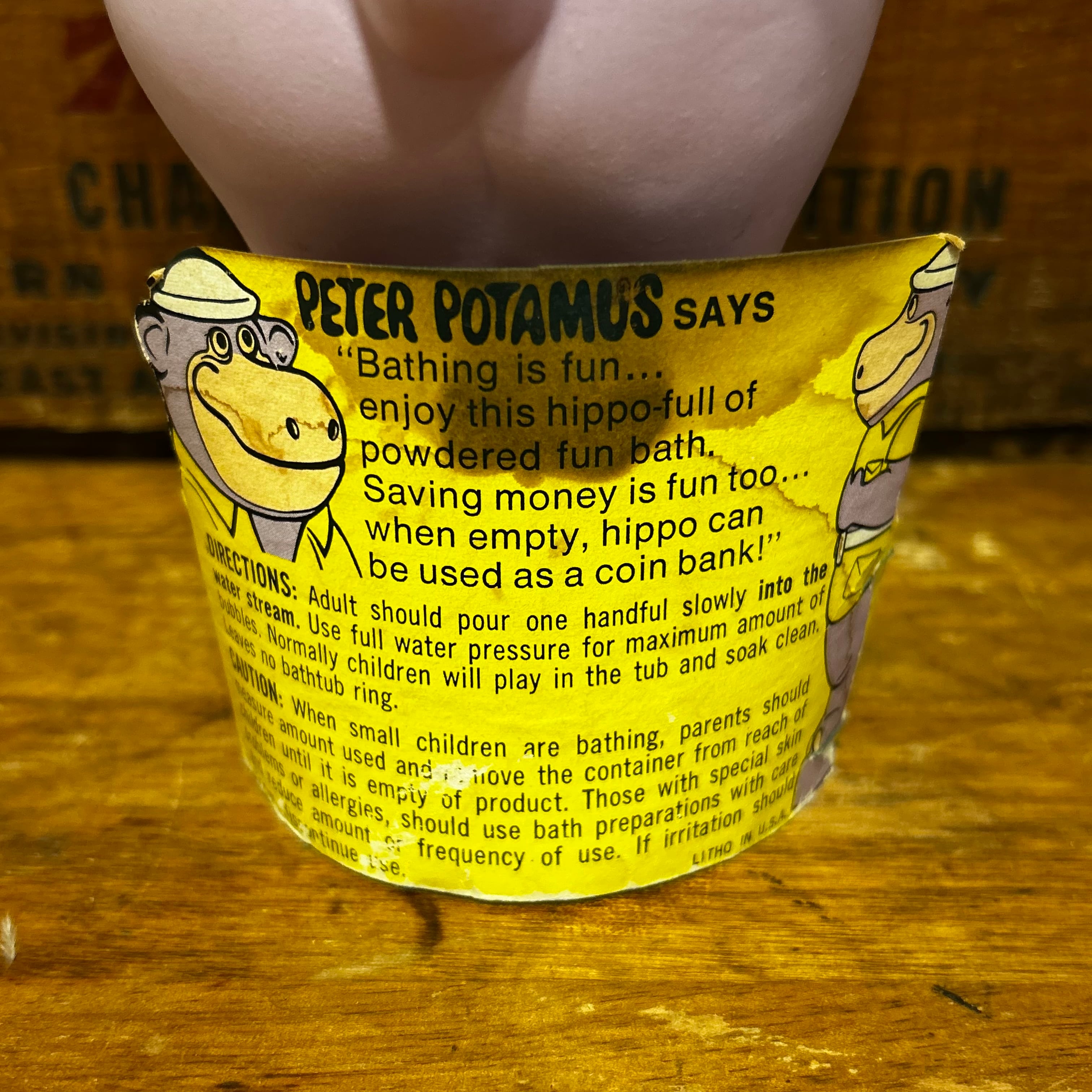 PETER POTAMUS The Hippo-Full of Bubble Powdered CoinBank Bath BANK