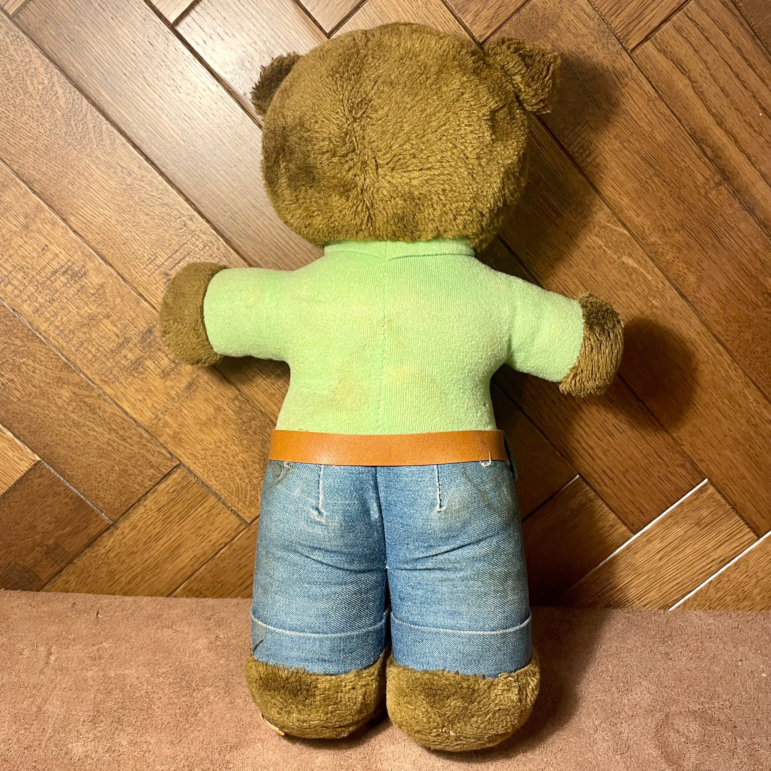 1970年代 スモーキーベア のぬいぐるみ 本体大きなダメージはありませんが全体的にシミなどの汚れがあります。自立はしません。中身綿はぎっしり詰まったぬいぐるみです。 大きさ 約 高さ35cm 在庫番号D-71